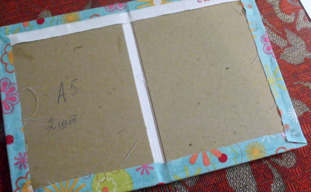 - приклеиваем к переплетному картону с учетом толщины получившейся папки.